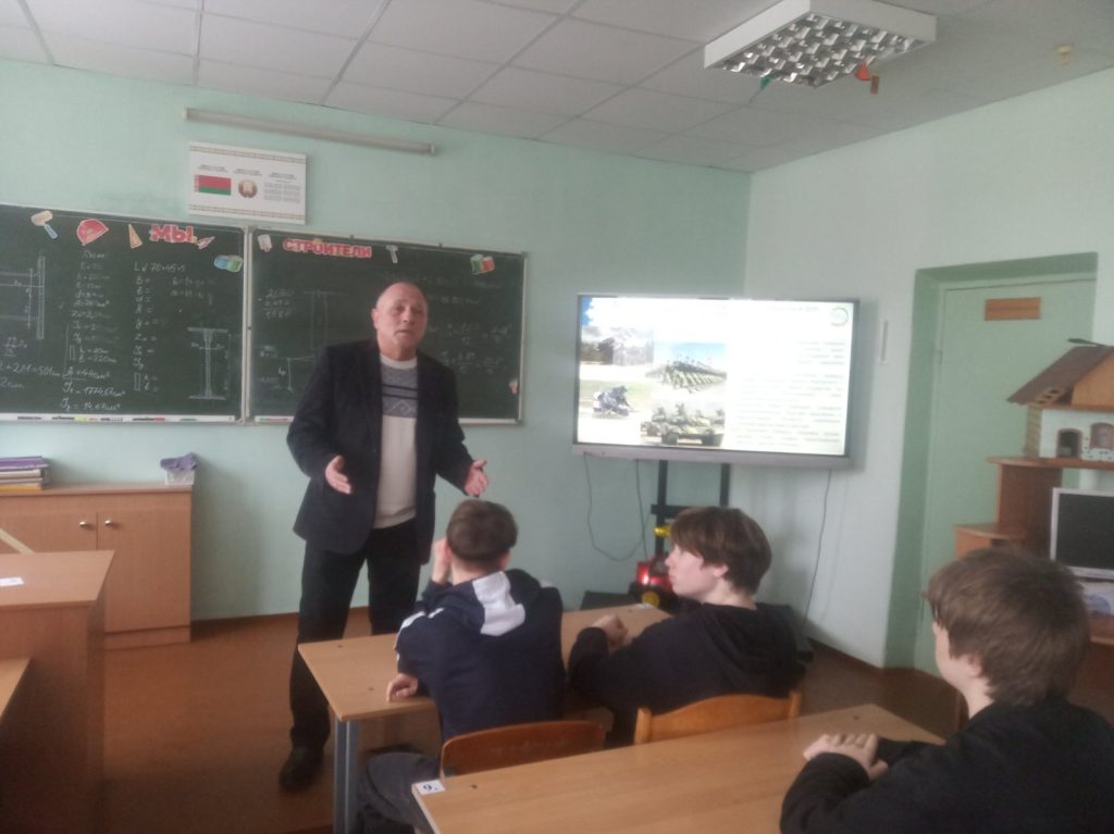 Была организована беседа по актуализации знаний учащихся о защите государственной границы Республики Беларусь, о Вооруженных Силах Беларуси как гаранте национальной безопасности страны; о военной службе как школе мужества; об учебных заведениях, готовящих военных специалистов; о роли военно-патриотических клубов в патриотическом воспитании молодежи. В интерактивной форме учащиеся обсудили вопросы мира как безусловной ценности и необходимого условия развития любого государства; обеспечения обороноспособности Республики Беларусь; военной службы как дела чести, школы мужества и самоотверженности.