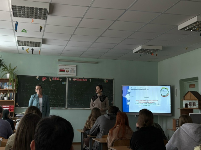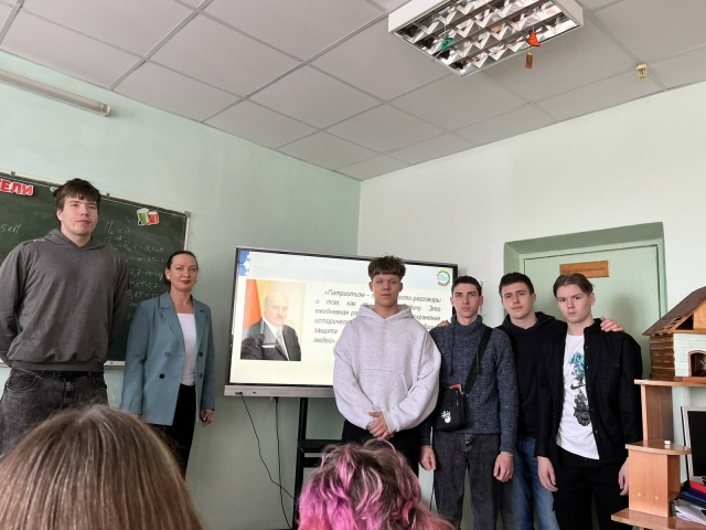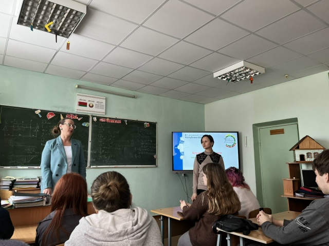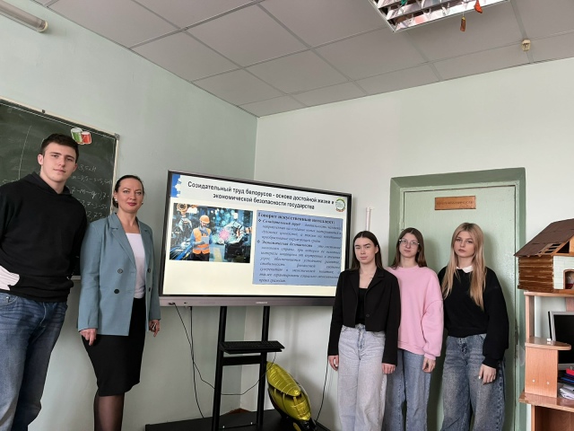 26 февраля учащиеся нашего колледжа в рамках занятий ШАГ по теме «Быть достойным гражданином Республики Беларусь – значит быть частью белорусского общества» встретились с ведущим инженерном по подготовке кадров ОАО «Красный пищевик» Кулаковской Ольгой Михайловной. Учащиеся вспомнили о значении и содержании понятий «патриот», «патриотизм», «созидательный труд», «экономическая безопасность»; о важности патриотизма, о роли созидательного труда на благо страны. Специалист предприятия ответила на вопросы учащихся о вкладе ОАО «Красный пищевик» в экономику страны, о льготах для молодых специалистов на предприятии, о «цифровизации» производства. Ольга Михайловна рассказала, за что испытывает чувство гордости за свое дело, подчеркнула важность созидательного труда для белорусского общества.