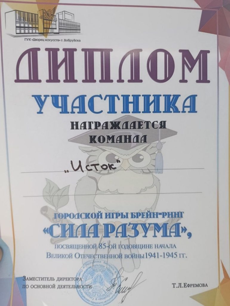 23 апреля во «Дворце искусств» города Бобруйска прошла городская игра Брейн-Ринг «Сила разума», посвящённая 85 годовщине начала Великой отечественной войны 1941-1945 гг.
